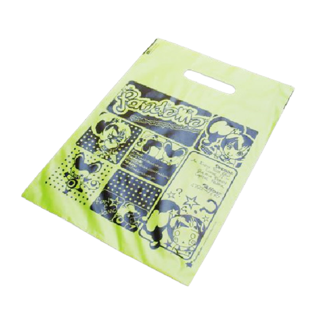 Bolsa rectangular clásica con perforación superior para facilitar el transporte.