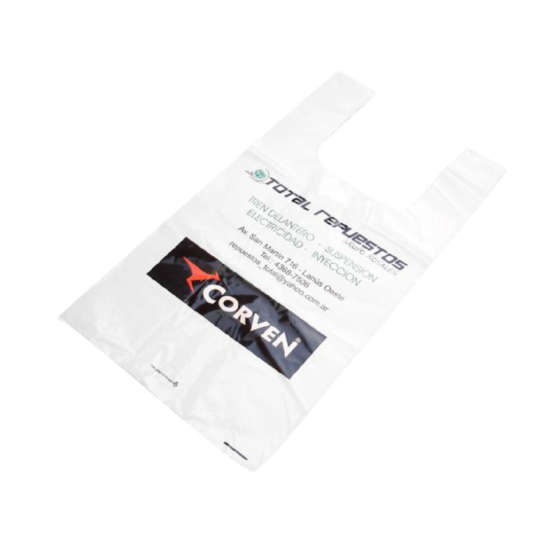 Bolsa de polietileno conocida tradicionalmente como bolsa tipo supermercado.
